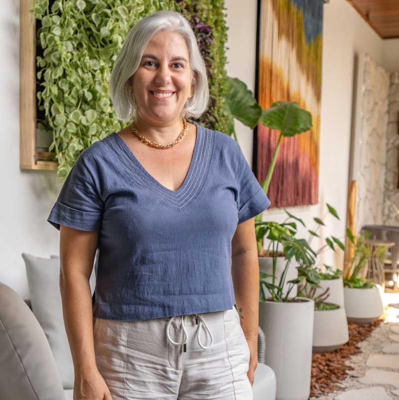 A arquiteta e paisagista Carla Dadazio se inspirou na prática japonesa Shinrin-yoku, ou banho de floresta, que consiste em passar um tempo ligado à natureza, exercitando a atenção plena e aguçando os sentidos, o que causa relaxamento, diminui a ansiedade e o stress.