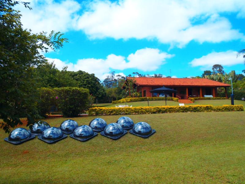 Este equipamento funciona como uma estufa, protegida por uma cúpula de acrílico especial, mantendo a piscina aquecida a custo zero. Podem ser instalados com bombas independentes trazendo a água quente através dos dispositivos de retorno da piscina.