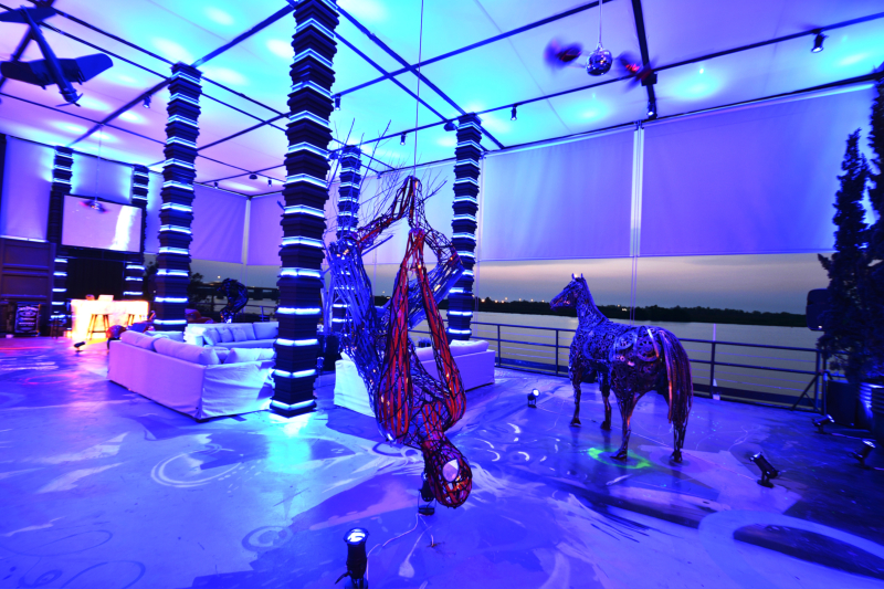 Os toldos automatizados emolduram a paisagem, a mais bela da capital gaúcha, como se fosse uma grande pintura. Os sentidos ficam mais aguçados com a batida do som, vindas da cabine de DJ em pedra ônix, translúcida e iluminada.
