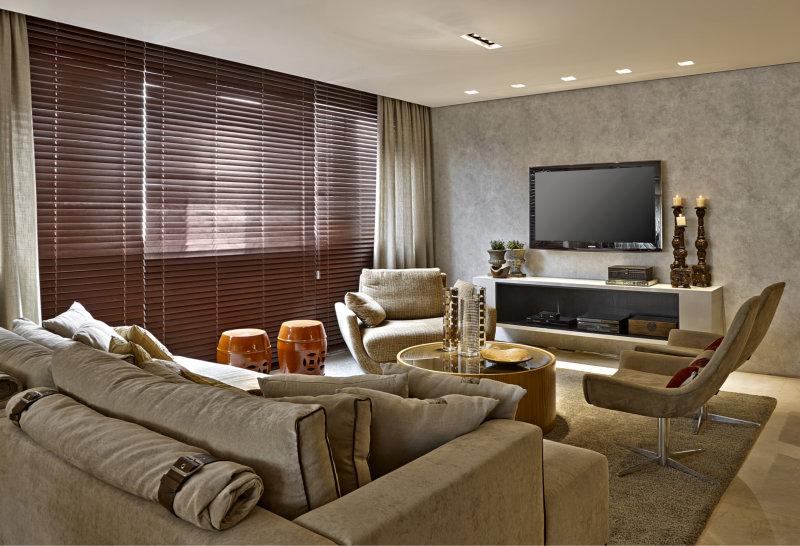 Projeto da arquiteta Gláucia Britto, nessa sala de TV, o garden seat tem função decorativa, de acento e apoio. Foto: Jomar Bragança