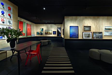 Um espaço expositivo e de venda de fotografias é a proposta da Galeria, que vai trazer trabalhos de cerca de dez fotógrafos selecionados por meio de uma curadoria especial. A arquiteta Bernadette Corrêa idealizou um espaço predominantemente escuro, onde a iluminação, da La Lampe, irá incidir somente sobre as fotos apoiadas numa prateleira fixada em painéis. Assim, uma grande faixa horizontal é destacada pela luz em todo o perímetro da Galeria.