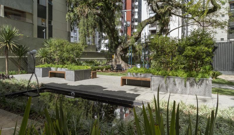 Com três projetos distintos, os jardins da CASA COR SANTA CATARINA 2016 apresentam um jeito de morar brasileiro onde o verde está cada vez mais presente e até comandam o projeto. “O jardim em frente a casa, um espaço de contemplação onde um eixo central convida as pessoas a circularem pelo espaço. No piso e nas floreiras, o revestimento com piso drenante, material sustentável feito com restos de materiais. As vegetações de pequeno e médio porte, foram dispostas de maneira que não ofusca-se a beleza da casa", explica a arquiteta Ana Trevisan. Destaque para o enorme Flamboyant, que foi valorizado com balanços azuis que relembram a infância.