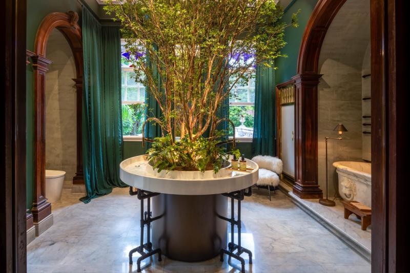 Ouriço Arquitetura transplantou uma jabuticabeira para a Sala de Banho, com banheira que teria pertencido à Imperatriz Teresa Cristina.