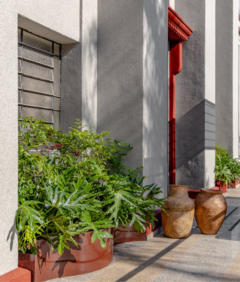 Cores claras e elementos naturais como madeira, pedras e barbantes complementam o projeto. A água se faz presente em bacias com plantas aquáticas e carnívoras, além de peixinhos. Destaque ainda para as esculturas em ferro de Albenzo Almeida e em madeira de Francisco Suelo, a tapeçaria contemporânea da Carolina Kroff e os quadros realistas do fotógrafo Caue Tucci.