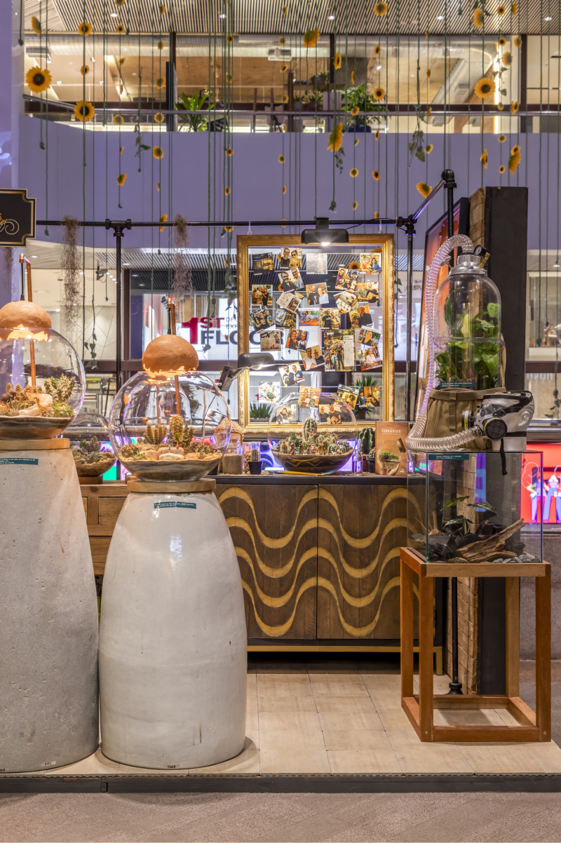 Cores e aromas invadem os corredores do shopping que tem como proposta central os vibrantes girassóis, flor que significa a felicidade, prosperidade e representa a vitalidade e reflete as energias positivas. A instalação visual botânica de Gabriela Nora, da Galeria Botânica, propõe a sensação solar dos campos dos girassóis, com uma construção de paisagem sensorial de cores, texturas e sonoridades. Simulação para uma experiência sensível, encontro corpo-espaços-natureza.